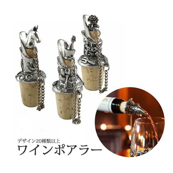 ワインの時間を素敵に演出しませんか? 英国製のこのワインポアラーは、ワインの栓に、もう一つ小さな栓が付き、注ぎ口(ポワラー)となっている優れもの! 楽しいデザインは20種類以上。