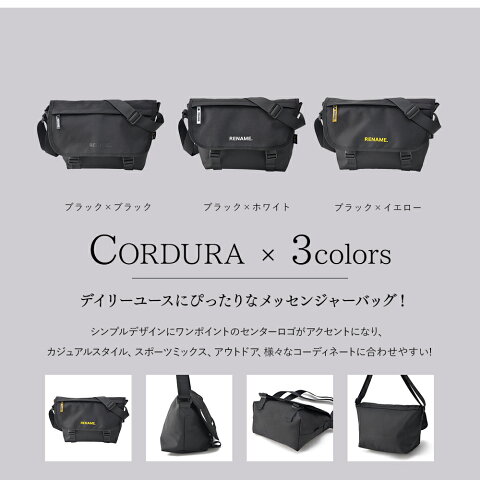 【商品名】 Rename CORDURAナイロン ダブルバックルメッセンジャーバッグ 【商品説明】 ワンポイントのセンターロゴがアクセントに! 本体は耐久性、耐水性に優れた CORDURA EcoMade Canvas仕様! メイン収納は、マチをしっかり取ってあり、 ペットボトルや長財布なども楽々収納可能! Re nameは(株)トップハウスのオリジナルブランドです。